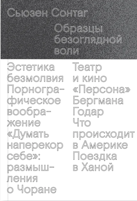 «Образцы безоглядной воли» (1969) — сборник эссе, в котором Сьюзен Сонтаг расширяет границы исследования, предпринятого в ее знаменитой книге «Против интерпретации» (1966).