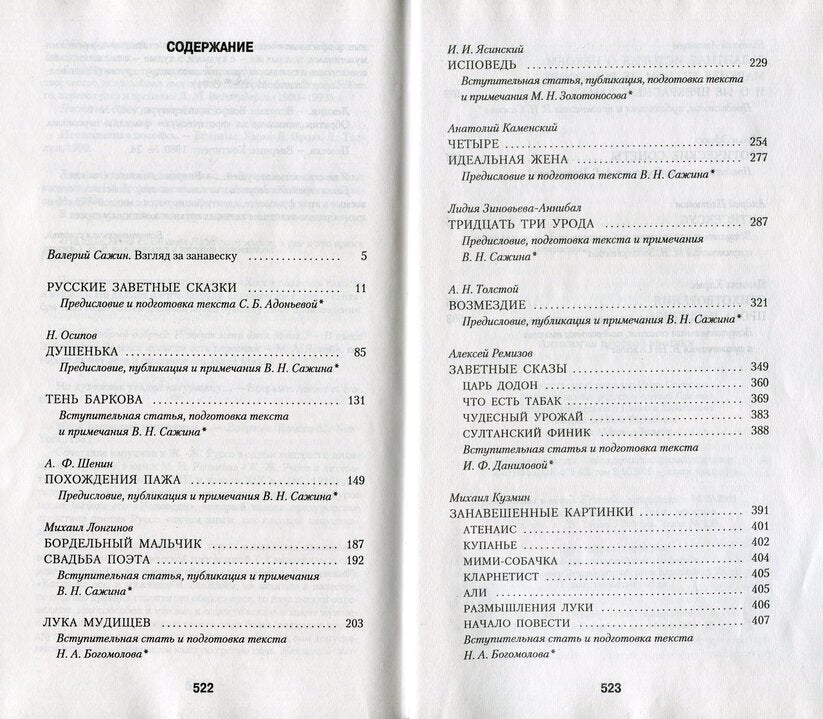Тексты, которые читатель найдет в этой книге, в других изданиях русских классиков стыдливо прячутся за строчками отточий. Собранные же вместе, они представляют собой, возможно, наиболее полный свод русской литературной эротики. Теперь, когда вокруг `занавешенных картинок` нашей словесности исчезла атмосфера запрета и таинственности, у нас появляется возможность заглянуть по ту сторону занавеса…